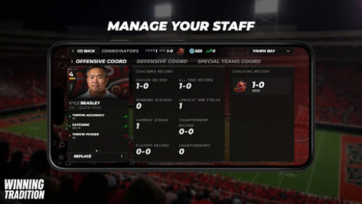 Football Coach: Winning Tradition is made for fans of football coach games, football GM sims, and anyone who loves building a football dynasty or franchise from the ground up.