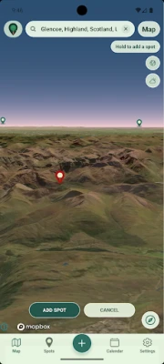 Long-press anywhere on the map to mark a location. Name it, add notes and attach up to 5 photos. Your spots are private - stored under your account, visible only to you.