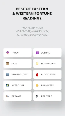 We provide the best of Eastern and Western Fortune Reading, all in one application. Whether it’s just for fun or for serious matters you need guidance on, you’ve come to the right place!