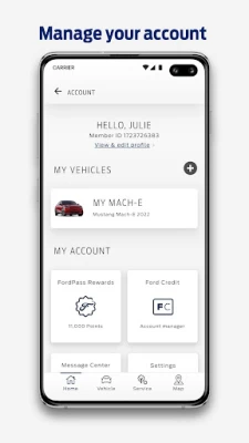 • Send convenient remote commands – Lock, unlock, and start your vehicle using complimentary remote vehicle controls (1) – when equipped with FordPass® Connect (2) • Electric vehicle ownership support – Monitor charging progress and use Departure Times to pre-condition your battery and cabin (3) • FordPass feature availability varies by vehicle and country. Images shown for illustrative purposes only