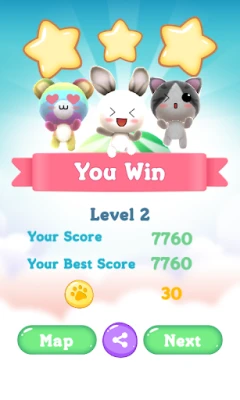 A fun animal raising game! Challenge the thrilling Match 3 stages with your cat to get more coins so you can buy more foods and animals