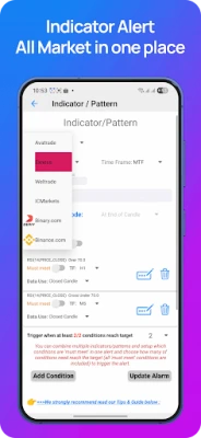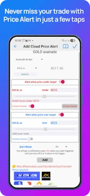 - Set custom price/rate targets or custom indicator (RSI, MACD, STO, MA...) signals with just a few taps.