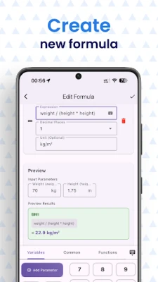 Turn any idea into a calculator you can trust. Formula Calculator lets you build custom calculators with variables, functions and units—perfect for study, engineering, finance, science and daily life.