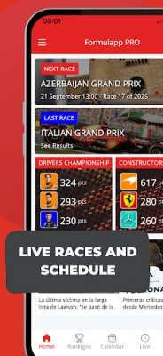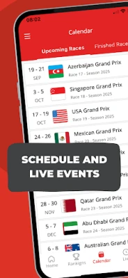 Events: Follow every event live — races, qualifying, practice sessions, sprint races, and more.