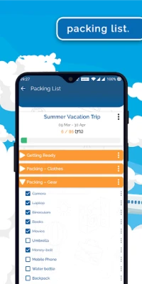 - Packing checklist : Keep track of things to pack for your next trip.