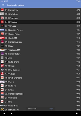 FEATURES ● listen to the radio in the background while using other apps ● listen to FM radio even if you are abroad ● the interface is really easy to use, with one click you can listen to any radio station ● configure the player's options according to the quality of the internet network ● watch TV in France