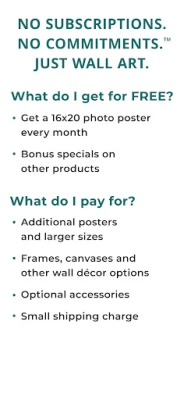 Introducing FreePrints Photo Art—wall art the FreePrints way. Now you can turn your favorite photos into custom, one-of-a-kind wall décor and do it for FREE! FreePrints Photo Art gives you a FREE 16x20 photo poster every month with no subscriptions and no commitments.