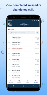 Contacts: Dial saved phone contacts from within your Freshcaller app