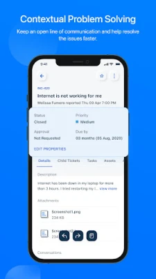 Create, respond, assign, and manage tickets on the fly for unparalleled convenience. You can edit the ticket, modify ticket properties, respond to it, close it, merge it with another ticket, and even execute scenario automations.