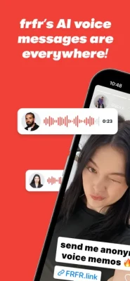 Experience a mind-blowing way to connect with friends using frfr, the ultimate app for anonymous AI voice messaging on Instagram stories, powered by advanced AI technology! Share your unique frfr link on your story and let friends send you customized anonymous voice messages featuring next-level celebrity filters. Get ready for a rollercoaster ride of astonishing and inventive AI-generated messages from your followers and friends!