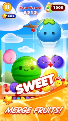 • Merge two of the same fruit to level up