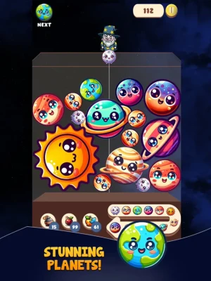 With over multiple themes of addictive gameplay, "Drop Merge Game" challenges you to match, merge, and strategize your way to success. Utilize your dropper to carefully stack and combine colorful fruit tiles, creating cascades of mouth-watering combinations. But beware of obstacles like pesky tyres and shifting planets, adding an extra layer of challenge to your merging endeavors.
