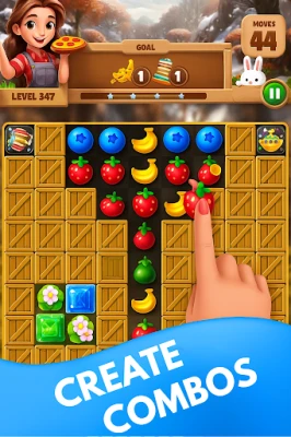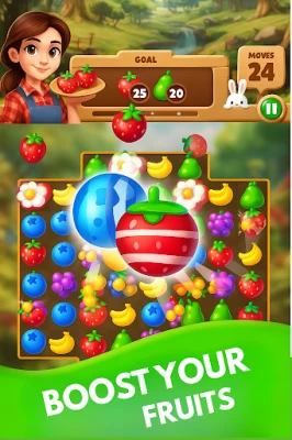 Swipe and match 3 or more fruits of the same type to clear the board. Combine more to create powerful boosters and chain reactions that bring tons of fun and surprises!