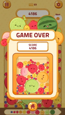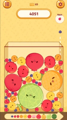 This is a puzzle game where you combine two identical fruits to evolve them into a higher-level fruit, ultimately aiming to create the watermelon.