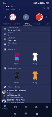 • Additional match information such as the match officials, the playing venue, attendance, and team kits, previous Head-to-Head matches