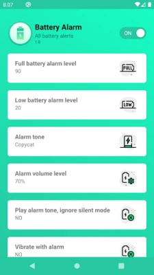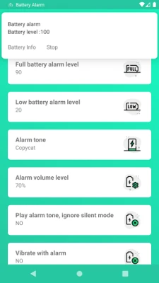Battery Alarm notifies you when your battery is fully charged or when battery is low.