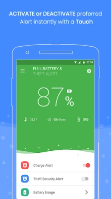 Get a theft alert alarm when someone tries to discharge your mobile from charging without your permission.