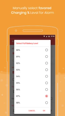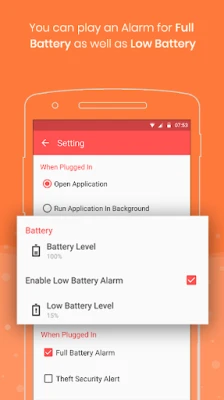 Set low battery or battery full alert alarm Sound with your favorite ringtone.