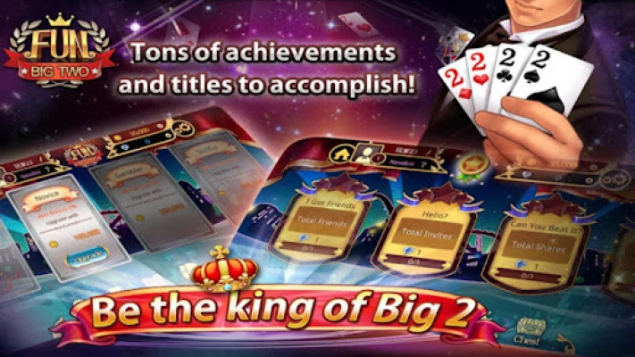 Don't hold back โ delve into Fun Big 2 today! With the offline mode available, you can relish this classic card game wherever you wish. Enhance your abilities, complete milestones, and accumulate rewards as you ascend the ranks. Fun Big 2: Card Battle Royale is here โ download now for the most thrilling card game experience ever!