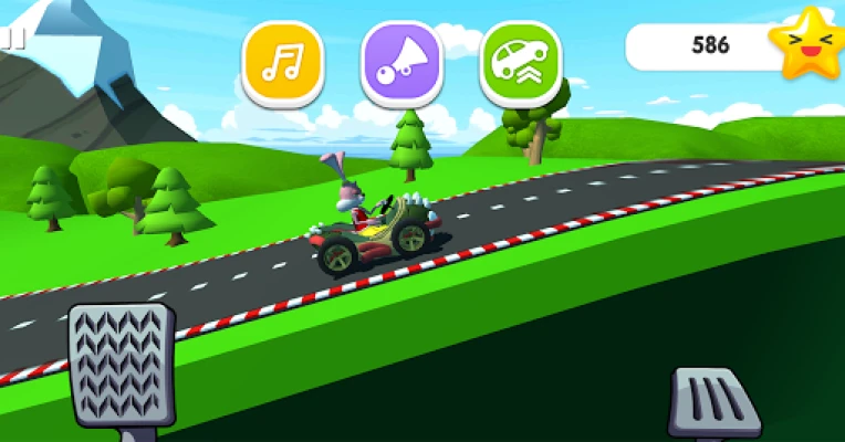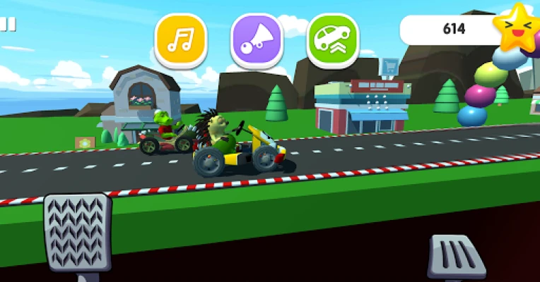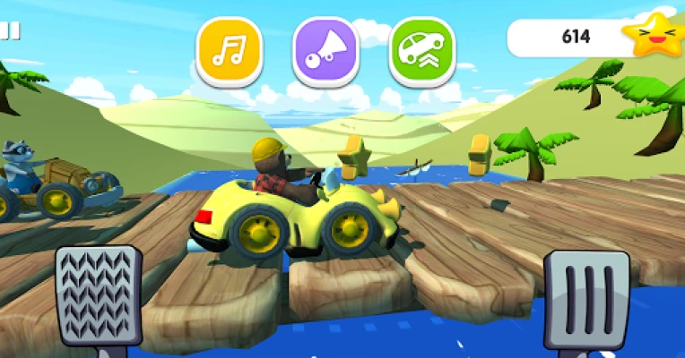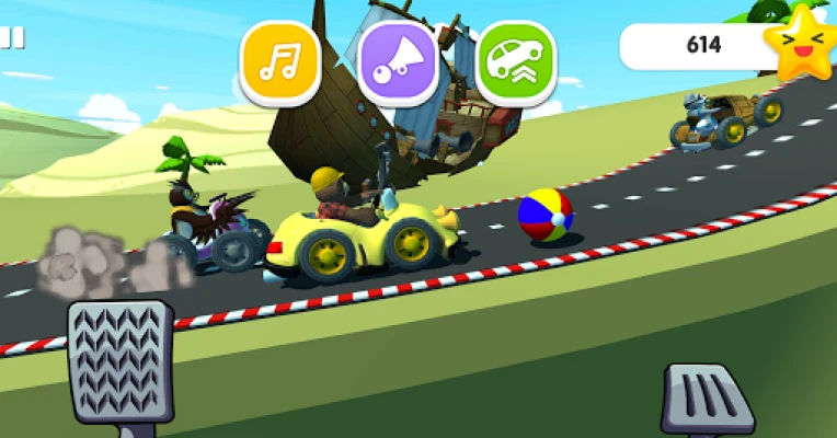 Big easy buttons to jump, beep the horn and change the music soundtrack along the race.