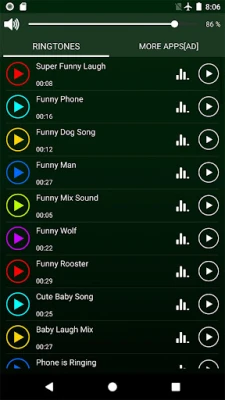Open this funny ringtones app, you can press the " play " button to listen to the MP3 music.