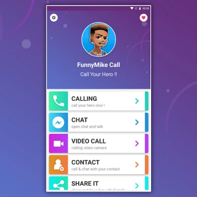It's Nice That you can make a phone call and see FunnyMike fake video call face call time, here is fake caller with FunnyMike fake call is a simple application is very cute funnymike wallpaper fake call and fake video call with a simple live chat, So just choose your method to call FunnyMike fake call, you have 3 option to connect with FunnyMike call (calling voice, live chat, calling video), Enjoy calling FunnyMike live wallpaper Chat in an easy way, feel free and download this Funny Mike call for have fun with friends.