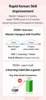 With FunPik, you can master Hangul in just 2 weeks, and with steady study, reach TOPIK Level 3 in 6 months.