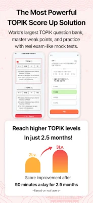 With the world’s largest TOPIK question bank (7,000+ questions), customized practice by type, and mock tests identical to the real exam, you can reach your target level faster.