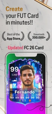 Introducing **FC 26 Card Creator** by FUTFC Team – the ultimate companion app for football enthusiasts, now with a refreshed look and even more powerful tools. Build your dream team with our intuitive squad builder, or dive into the card creator to design and share unique player cards, teams, and packs, all while engaging with a global community of football fans.