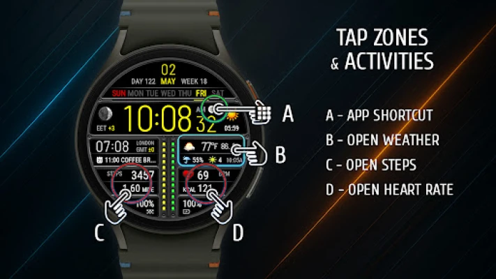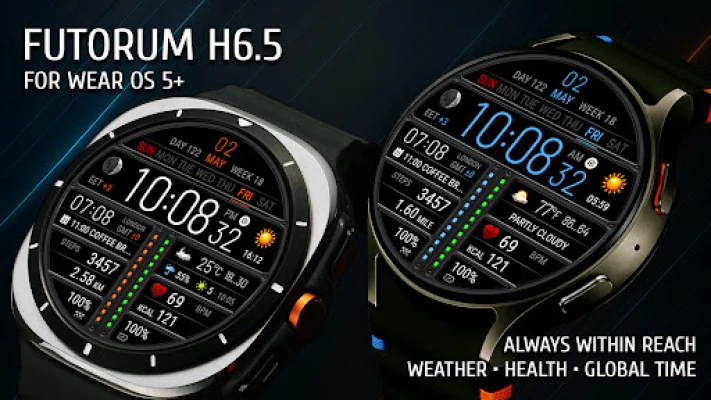 Download now and transform your watch into a high-performance dashboard — with real-time weather, health tracking, dual time zones, and sleek visuals.
