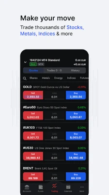 Test the market with a risk-free demo trading app, then transition seamlessly to real-time trading with access to over 2,100 instruments - from global stocks to metals, futures, and more.