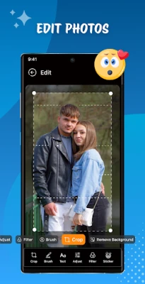 ✅Capture new photos with in-app camera and instantly edit them with crop, brush, text, adjust, sticker, and filter options.