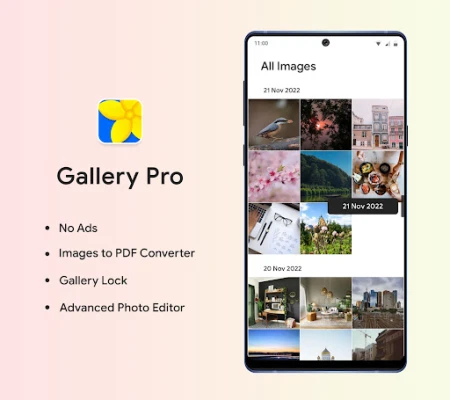 Gallery Pro includes additional features with highly customizable design allows you make Images to PDF Converter and advanced Photo Editor with no ads.