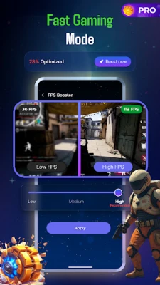 High-performance games need fast FPS, stable internet, and a responsive device. If your phone slows down, storage is full, or background apps are consuming resources, gameplay can feel choppy and frustrating. Game Booster Turbo PRO: No Lag solves these problems by dedicating resources to your games, optimizing FPS, and managing network usage efficiently, ensuring your device performs at its best.