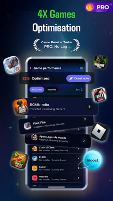 Ever get stuck in the middle of an intense game because your phone lags or freezes? Game Booster Turbo PRO: No Lag is built to make your gaming smoother, faster, and more enjoyable. Whether you’re playing PUBG, Roblox, Fortnite, Free Fire, Subway Surfer, Pizza Ready, or any other multiplayer game, this app helps optimize your device’s performance and internet connection so you can focus entirely on your gameplay—not on lag.