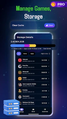 A full storage can slow down your phone and impact game performance. Game Booster Turbo PRO: No Lag identifies residual apps and frees up space instantly, keeping your device running fast and responsive.