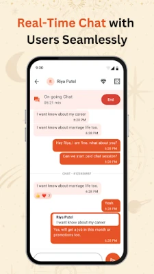 1. Receive Calls from GaneshaSpeaks.com Users 2. Receive Chats from GaneshaSpeaks.com Users 3. Access to all astrological charts like Birth Chart, Moon Chart, Navamsa Chart and more. 4. See Your Personal Details like Login Time and more. 5. Save Your Notes, directly in the app for all the Therapists, Counselors & Psychologists. [Minimum supported app version: 1.0.47]