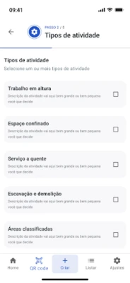 Neste é possível realizar as seguintes tarefas em relação a permissões: - criação - edição - responder checklists - selecionar tipo de atividades - selecionar executantes, aprovadores e validadores - criar assinaturas - completar e cancelar