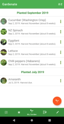 * Use 'My Garden' to track your plantings, with the predicted harvest dates to assist in your garden planning. Add notes and photos.