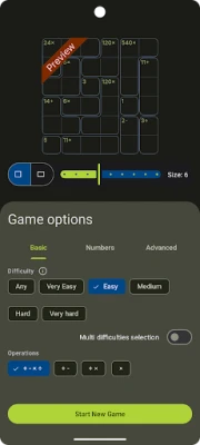 Via game options, you may alter the game to solve other digits, smaller or greater grids, hiding the operators.