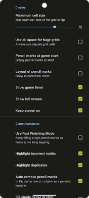 - Beta feature: 'Fast Finishing Mode' enables to fill cell with exactly one pencil mark rapidly. To be activated in the preferences. Feedback welcome, use the menu item 'Bugs and Features'.