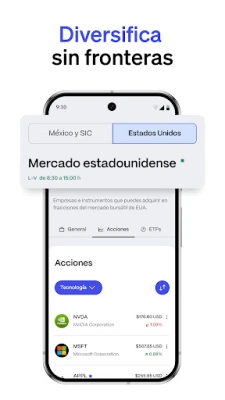 Invierte en las empresas que mueven la economía global a través de la Bolsa Mexicana de Valores, la Bolsa de Nueva York y Nasdaq, todo desde un mismo lugar.