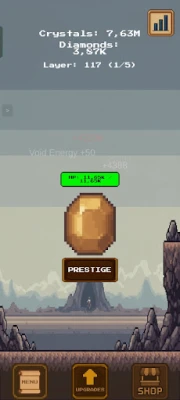 Smash through layers, collect crystals, and discover powerful upgrades in a nostalgic pixel-art world designed for mobile fun.