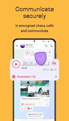 Communicate with no boundaries in any format - texts, stickers, audio and video. Remain connected to your close ones in any part of the world.