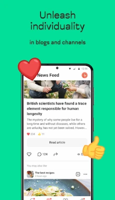 Choose your interests, subscribe to themed channels, discuss with friends while AI will analyze your activity and offer infinitely updated content in convenient formats - from short videos to long reads.