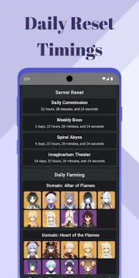 - Reset Time Tracking: Never miss out on daily commissions, resin refresh, and other important reset times, including Spiral Abyss.