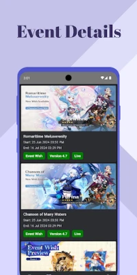 - Event Details: Stay informed about all ongoing and upcoming events, including banners, special events, and limited-time activities. Get reminders when events are about to end.