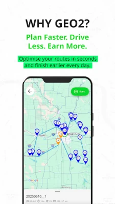 Save time and get more done with Geo2, the ultimate route planner for drivers and teams. Plan, optimize, and deliver faster - cutting drive time and fuel costs while boosting efficiency. Whether you are navigating city streets or managing a fleet, Geo2 helps you finish deliveries quicker so you can enjoy more free time.