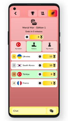 • World War Mode – Join a nation and enter a thrilling weekly competition where nations clash! Earn medals in special World War battles and climb the leaderboard alongside your teammates. The unique medal system rewards skill and courage — even smaller countries can rise to the top.