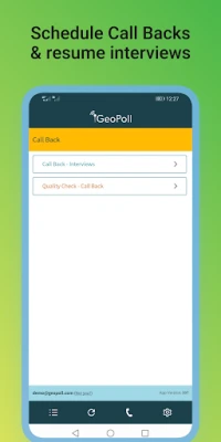 The GeoPoll Interviewer Application works together with the GeoPoll platform to help enumerators conduct CATI (Computer-Assisted Telephone Interviewing) and face-to-face/CAPI (Computer-Assisted Personal Interviewing) surveys.